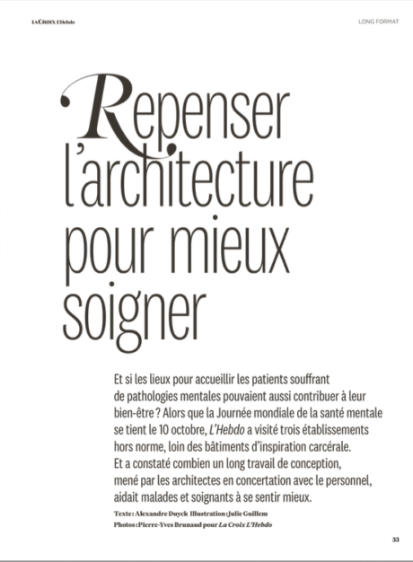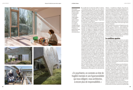 Et si les lieux pour accueillir les patients souffrant de pathologies mentales pouvaient aussi contribuer à leur bien-être ? Alors que la Journée mondiale de la santé mentale se tient le 10 octobre, L’Hebdo a visité trois établissements hors norme et a constaté combien un long travail de conception des architectes avec le personnel, aidait malades et soignants.