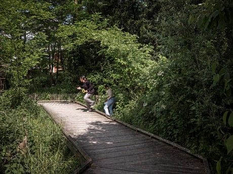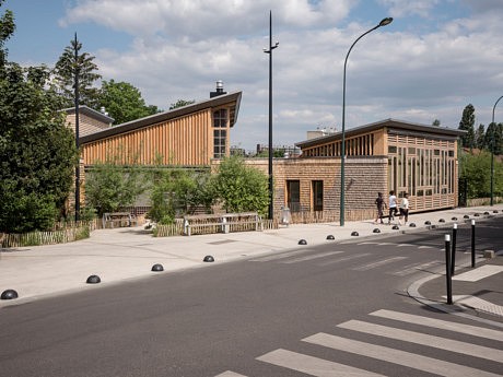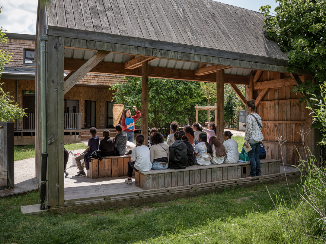 🚸 J’avais pris le soin d’organiser la journée en fonction de la présence annoncée d’un groupe d’enfants sur les lieux, une "classe du dehors" qui préfigure les futurs usages de l'équipement et du parc, juste avant l’inauguration prévue la semaine suivante. Je vous laisse découvrir le projet en images, avec cette description très efficace empruntée aux concepteurs d’archipel zéro :